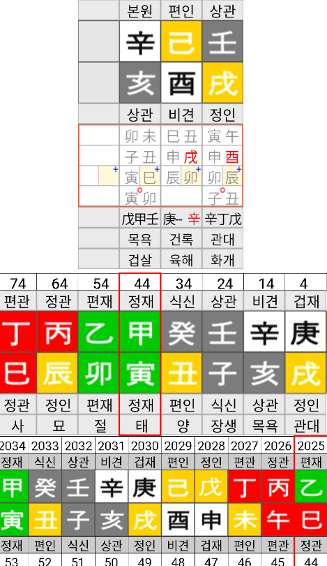 | 월지 | 유금 비견 — 자기관리, 흔들림 없는 이미지 |